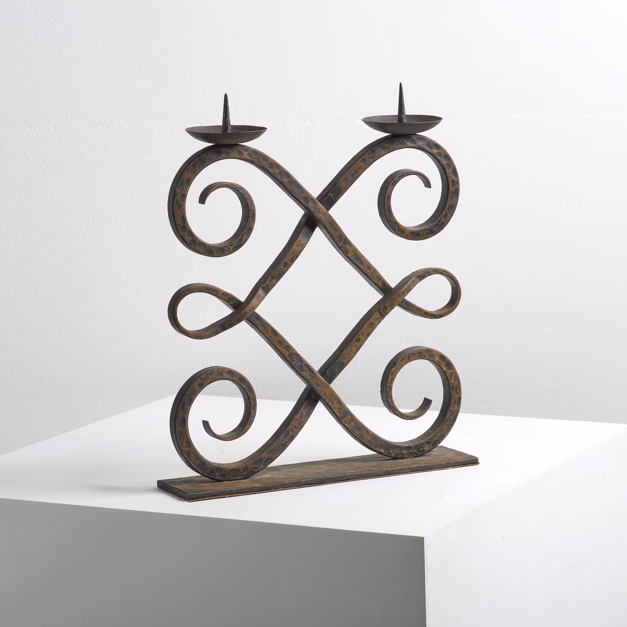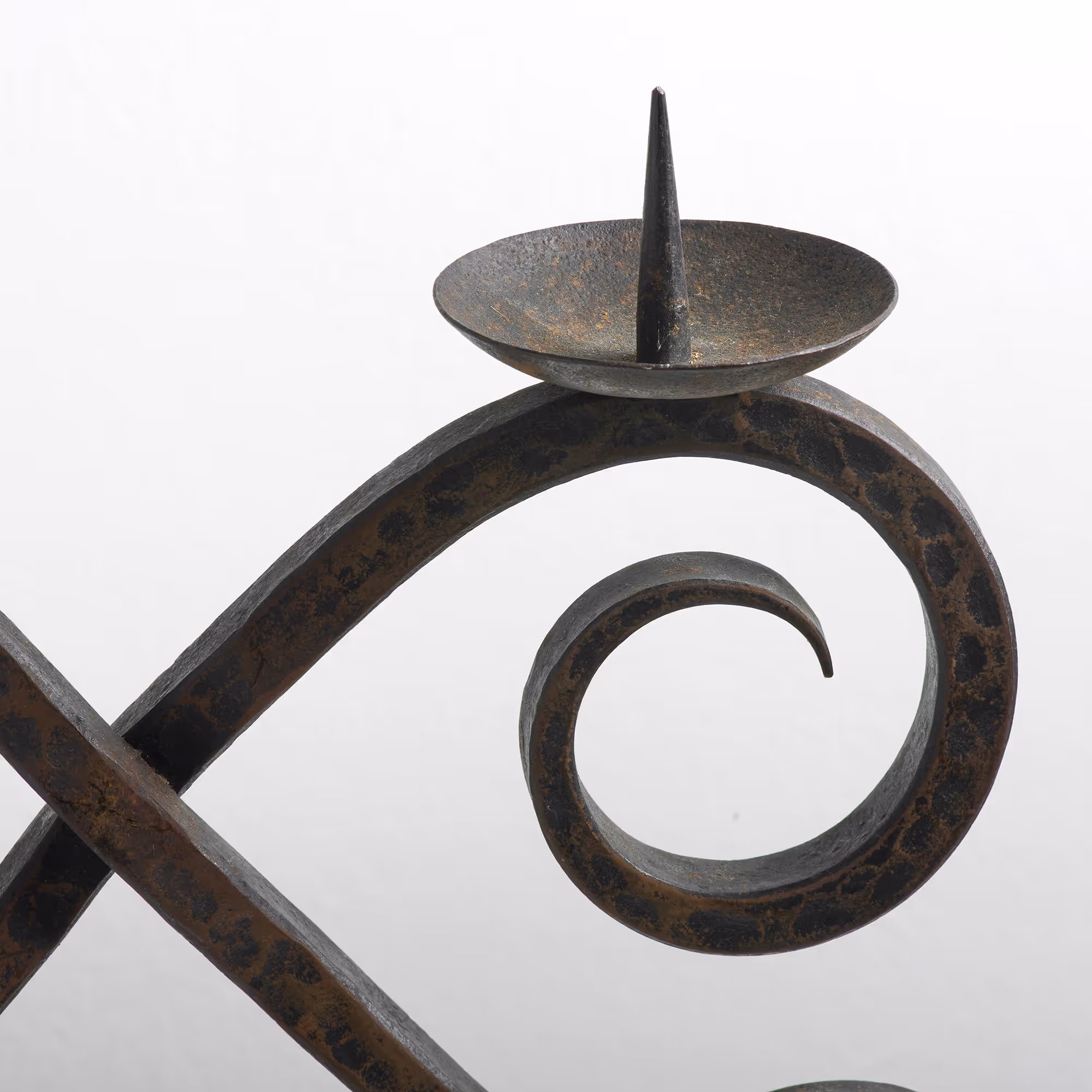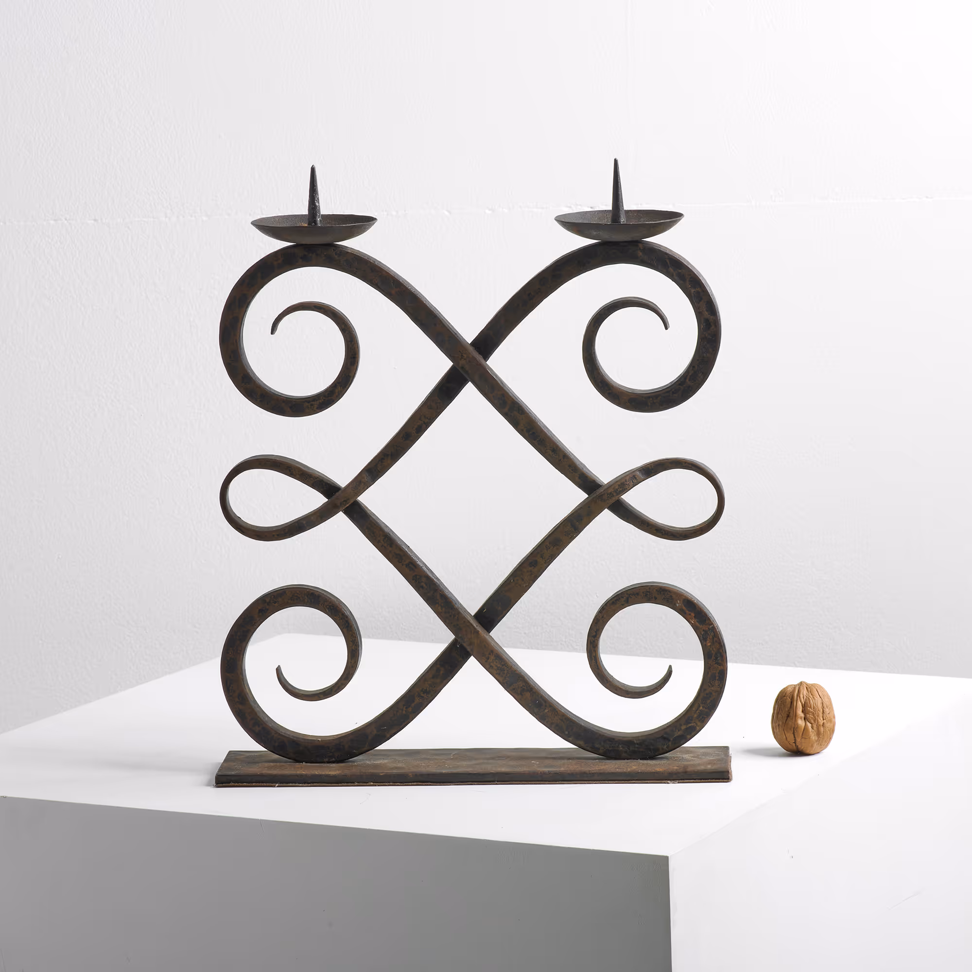 A two-way candlestick by Michel Zadounaisky (1903-1983). Hand-wrought steel.