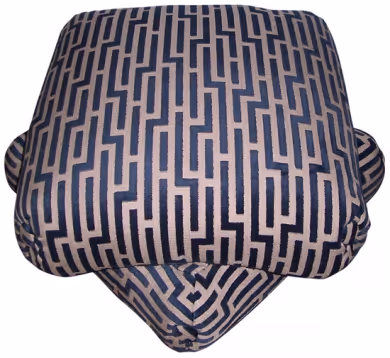 An Art Deco ottoman in the shape of two cushions on top of each other. Recently upholstered in an ink black and light brown chenille fabric